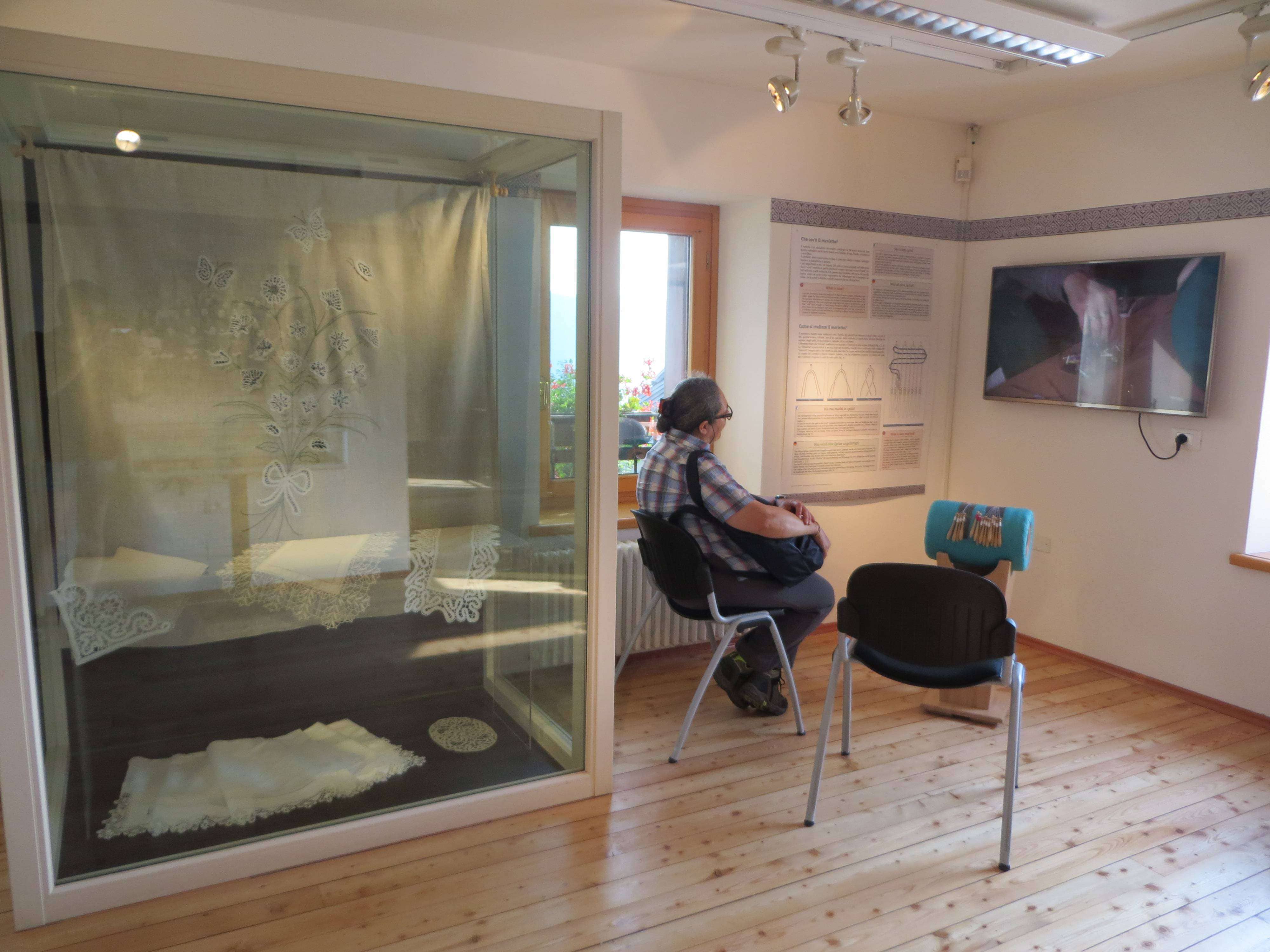 La sezione “’Z gekhnöppla atz Lusérn - L’arte del Merletto a fuselli a Luserna”, occupa due locali al secondo piano e presenta un elemento culturale caratterizzante la comunità cimbra di Luserna, ossia la tradizione della lavorazione del merletto a fuselli (chiamata anche “tombolo”).