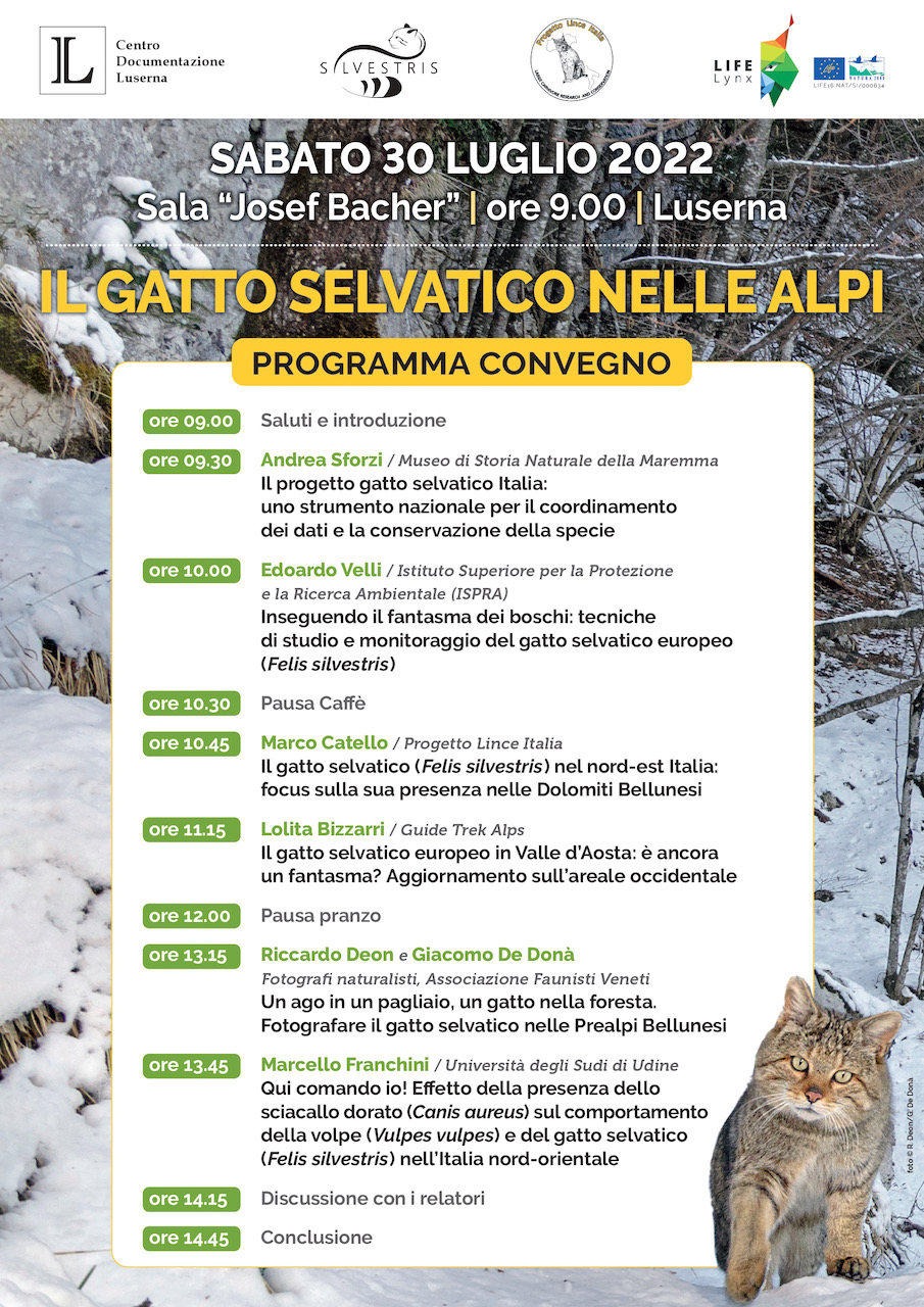 I numerosi relatori discuteranno della biologia della specie, delle tecniche di studio e monitoraggio e delle interazioni con altri carnivori. Verranno inoltre presentati nuovi dati sulla sua distribuzione in ambiente alpino.